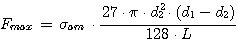 L'alberino conico, rappresentato in figura, lungo L è soggetto alla forza F. Siano D1 e D2 i diametri del cono. Calcolare la forza massima applicabile affinché il grado di sicurezza non sia inferiore a n Ipotesi di soluzione
