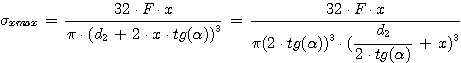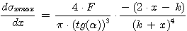 si noti come la tensione dipende dalla x in modo non lineare, per calcolare le sezione sottoposta al valore maggiore di tensione è necessario fare una derivata ottenendo: