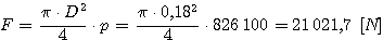 Questa pressione crea sulla pompa una forza F, posto D = 0,180 [m] :
