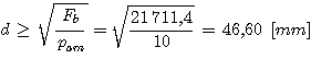 si pone d= 50 mm e considerando che per questo diametro le lunghezze disponibili sono l=30, l=50 ed l=70 mm