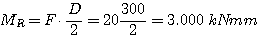 Il momento motore applicato deve essere uguale a quello resistente (determinato dal carico applicato sulla fune) che, tenendo conto del diametro D del tamburo, è:
