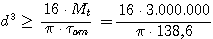 con gli opprtuni calcoli si ricava il valore minimo da assegnare al diametro; ottenendo