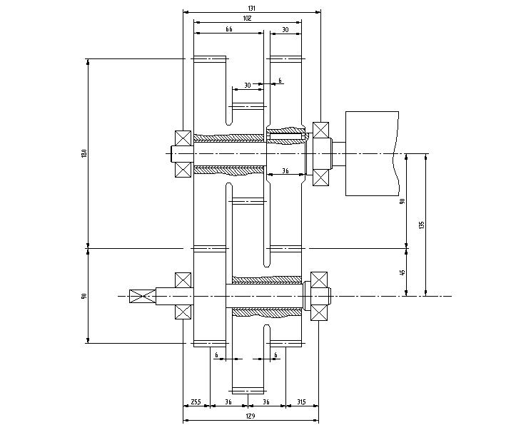 Il diametro di calettamento delle ruote 4 e 5 sarà anch'esso di 20 mm, mentre infine quello del cuscinetto di sinistra sarà di 17 mm.
