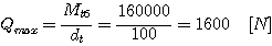 Se adesso si ipotizza che il tamburo sia applicato a sbalzo e che esso abbia un diametro di 100 mm è possibile ricavare il carico massimo sollevabile